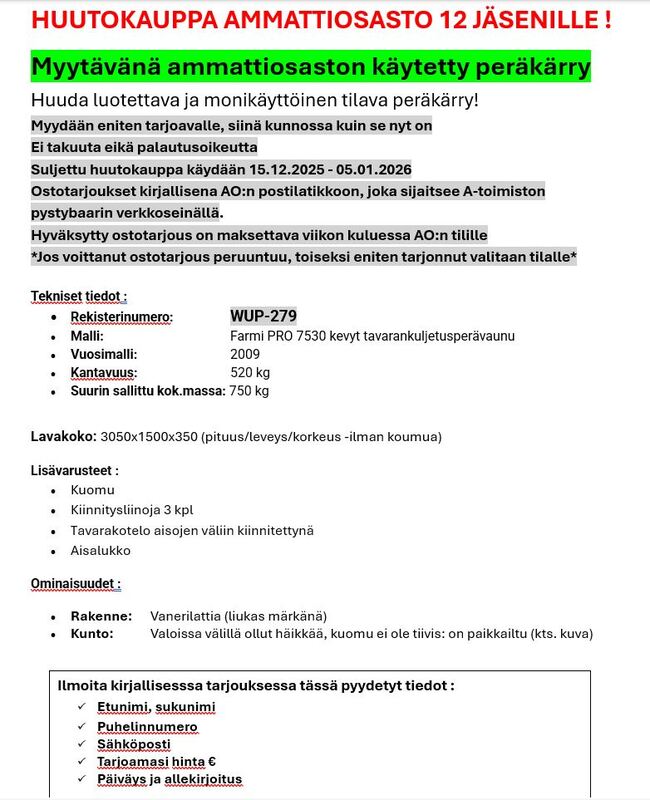 Tee tarjous peräkärrystä